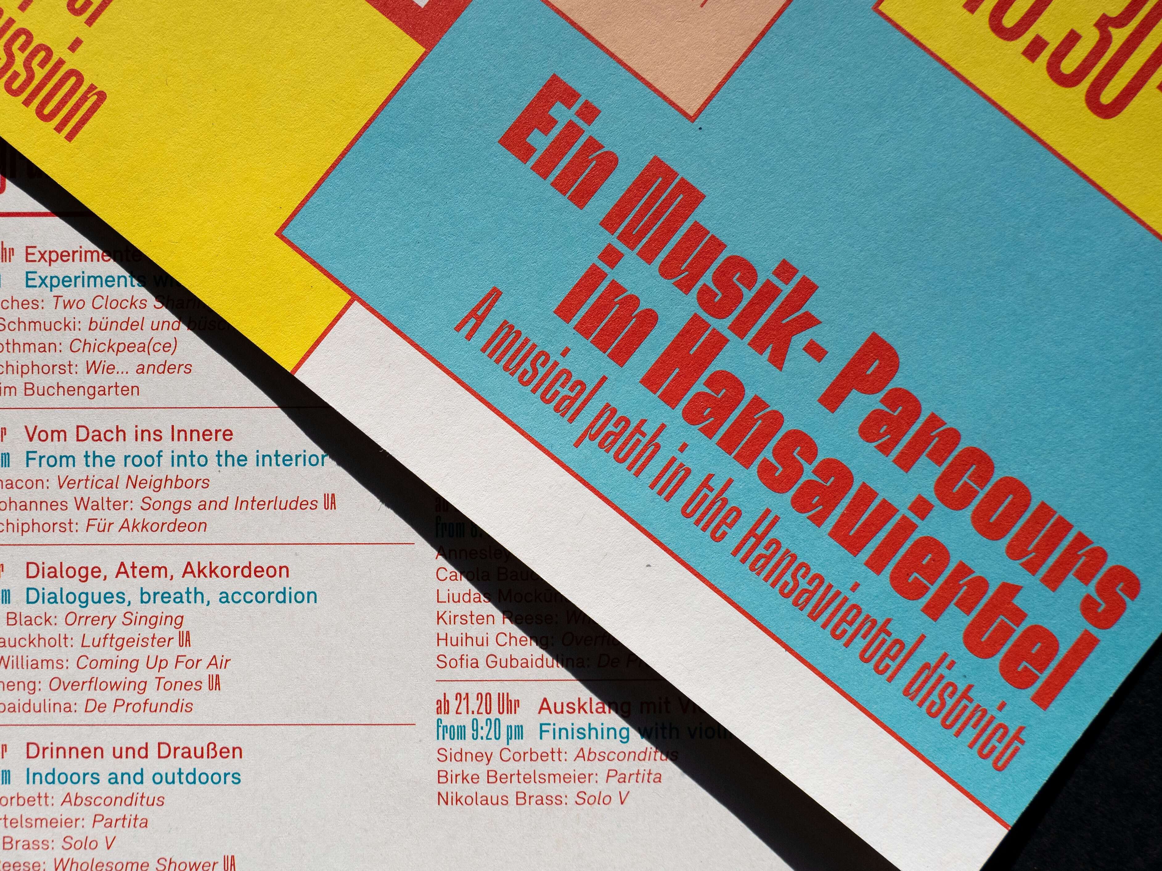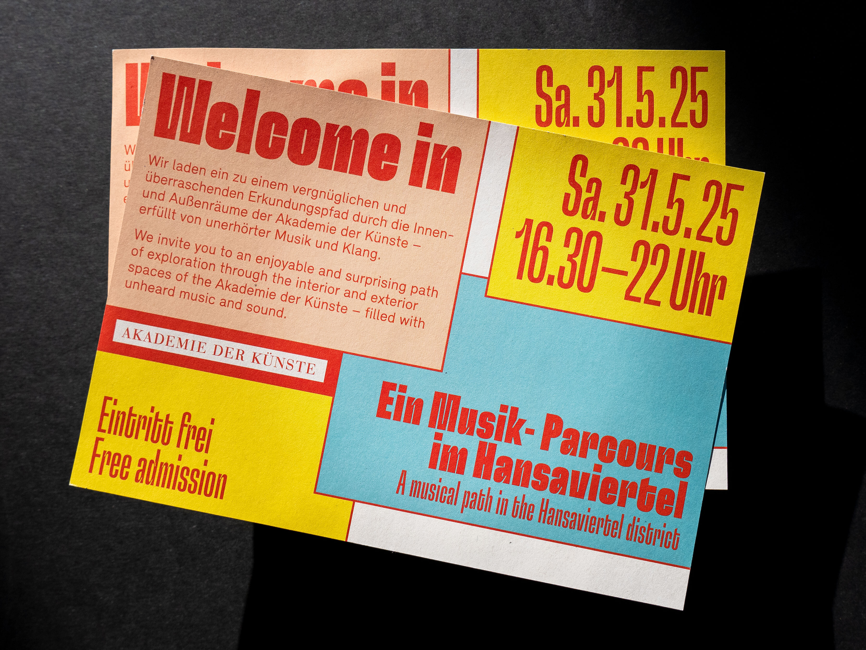 The weekend program of the Music Section at the Akademie deer Künste presents musical gems in its alcoves and large halls. We designed an identity for the event that emphasizes its exploratory nature and has a very inviting feel.